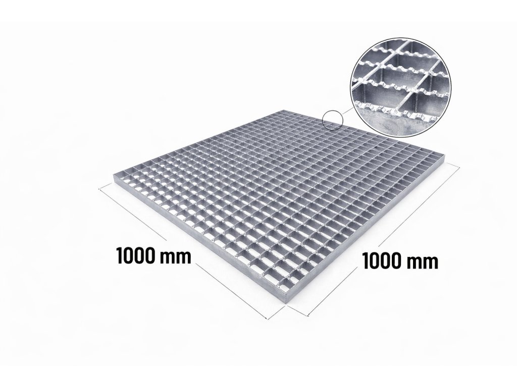 Ocelový protiskluzový zinkovaný rošt XSP 30/2 - 34 x 38 mm - 1000 x 1000 mm