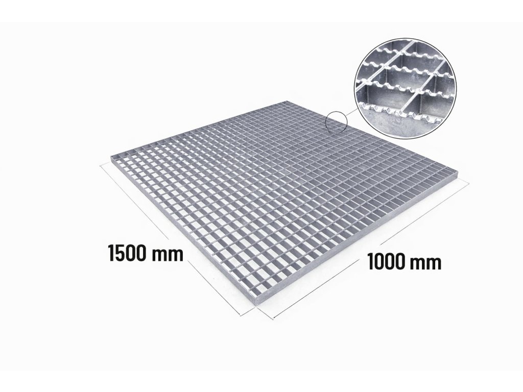 Ocelový protiskluzový zinkovaný rošt XSP 30/2 - 34 x 38 mm - 1500 x 1000 mm